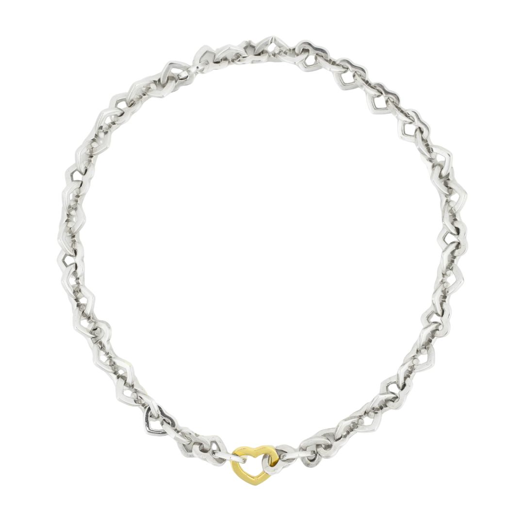 Tiffany & Co. Sterling Silver 18K Yellow Gold Heart Link Necklace 70.6g