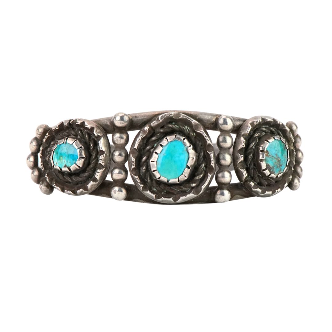 Antique Sterling Silver Turquoise Cuff Bracelet 1.275 ozt